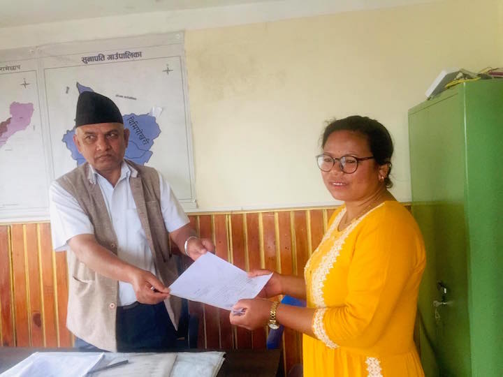 रामेछाप । नेकपा (माओवादी केन्द्र) सुनापति गाउँपालिकाको सदस्य नेतृ सितामाया मोक्तानले सुनापति गाउँपालिकाको उपाध्यक्षमा स्वतन्त्र उम्मेदवारी दर्ता गराएका छन् ।आफ्ना शुभचिन्तक सहित मुख्य निर्वाचन अधिकृतको कार्यालय पुगेर मोक्तानले स्वतन्त्र उम्मेदवारी दर्ता गराएका हुन् ।